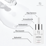 Exklusive Wirkstoffkomposition aus sehr hochdosiertem Oligo Hyaluron (HA mit dem kleinstmöglichen Molekulargewicht), langkettiger Hyaluronsäure, Niacinamide, Der Machlorella, diversen Peptidkomplexen, Seidenakazie, Spilanthol und Panthenol. Kann die Haut bis in die Tiefe durchfeuchten und deutlich aufpolstern. Tränensäcke, Schwellungen sowie dunkle Augenringe können sichtbar minimiert werden. Vorzugsweise kühl lagern.