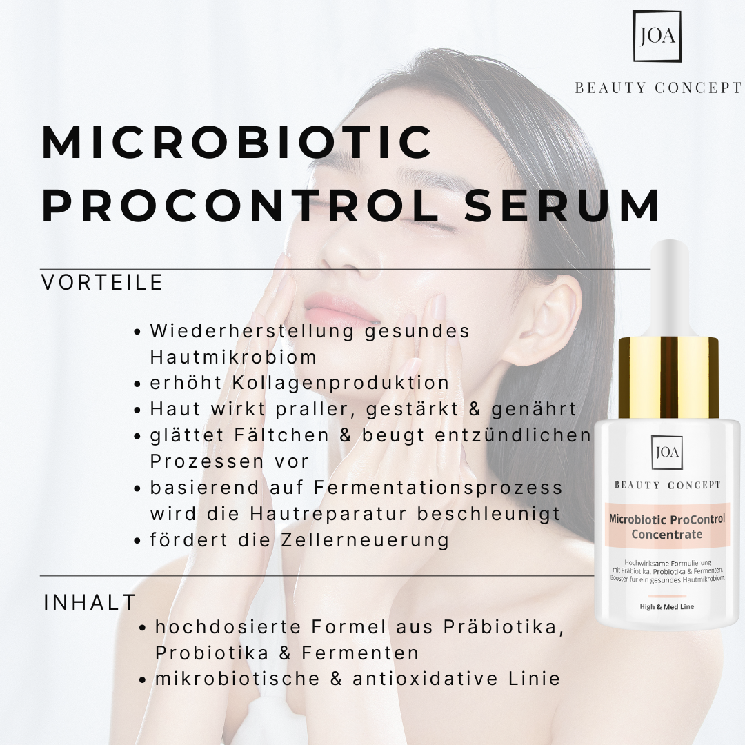 Das Microbiotic ProControl Concentrate ist ein Booster für ein gesundes Hautmikrobiom. Die hochwirksame Formulierung mit Präbiotika, Probiotika und Fermenten in feinster Molekülgröße ist morgens uns abends nach der Pflegeroutine aufzutragen.