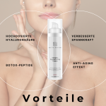 Kraftvolle Anti-Aging Creme mit hochdosierter Hylauronsäure (langkettig, kurzzeitig, quervernetzt) und Botox Peptiden.